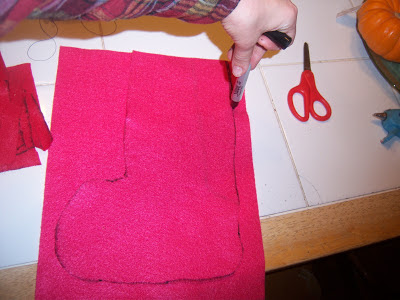 3. Place the cut out stocking on another sheet of felt and draw around that: